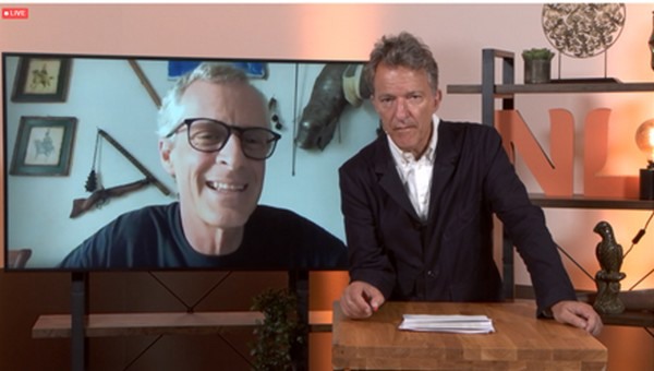 The moderator, Frederik Vossenaar, with one of the speakers, professor Mark Tester