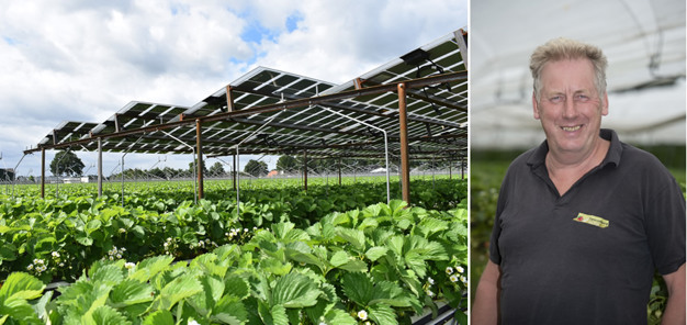 As a trial, the solar energy company, GroenLeven, has placed solar panels above some of Theo's strawberries. This is one of the sustainable measures Theo is deploying and researching. "Solar energy is a good thing. I want to participate in that," begins Theo.