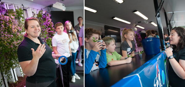 The AquaJack includes fish, water, LED lights, plants and hands-on lessons. Students perform water tests and label the different parts of the aquaponic system. The lab is capable of connecting to the sensor system at the main Capital Campus, so students and community members can compare what is occurring at the main facility to what is occurring on the mobile lab.