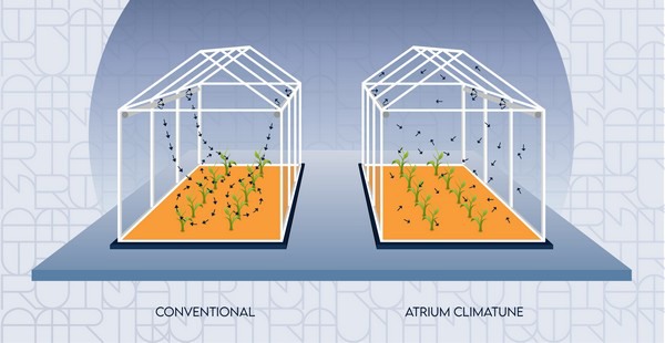 Koen sees opportunities especially in indoor growing systems. "We have several customers who do multilayer. They have already done a lot of research into how you achieve an optimum climate. Often the solution is sought in many fans, air hoses and sensors, and even then the equal RH and temperature distribution is a huge challenge. In Atrium Climatune, we see a system that can regulate the climate effectively without having to hang the whole thing up."