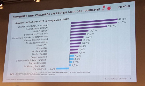 At the end of his presentation, Fabian addresses other aspects such as sustainability and online affinity. According to the report, organic markets in Germany would have generated sales of 14.9 billion euros in 2020. But the topic of healthy nutrition and regionality is also important to many. Furthermore, the number of vegetarians and vegans has also increased. These, in turn, are particularly well informed and "price-sensitive". In order to be able to reach them - but also all other consumer groups - Fabian says: "You shouldn't basically exclude routes to the consumer that exist, but rather reach the consumer with a widely diversified portfolio."