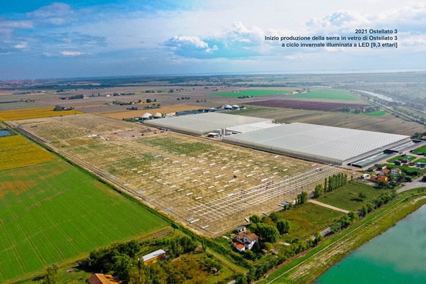 The two new iron-glass greenhouses Ostellato 3 and Ostellato 4 are part of their ambitious project. 10 hectares are already operative, and another 10 will be in March 2022.