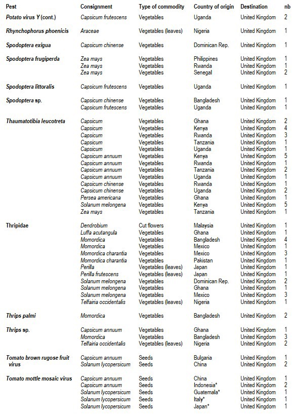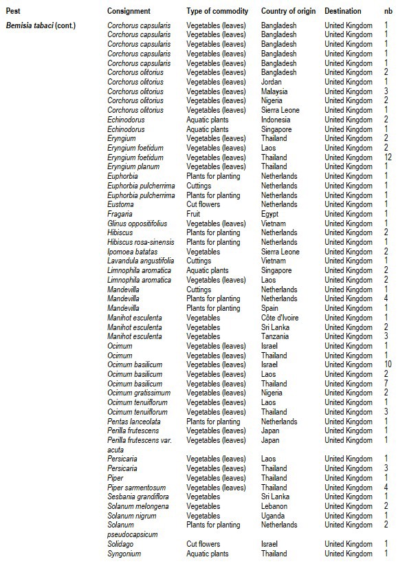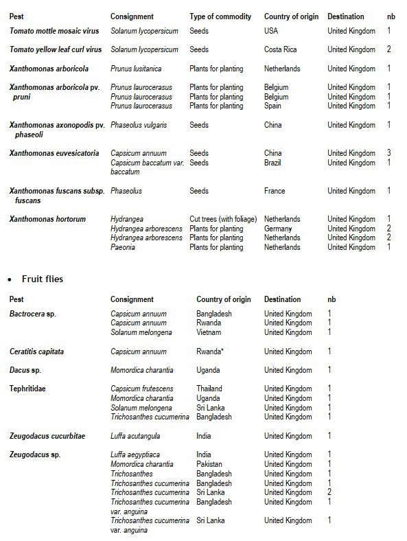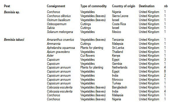 In a November update, the European Plant Protection Organization has published a list of plant health infringements for the UK for the period January-October 2021. Whitefly appears frequently in the list, and Tomato brown rugose fruit virus (ToBRFV) appears twice, once from Bulgaria and once from China.
