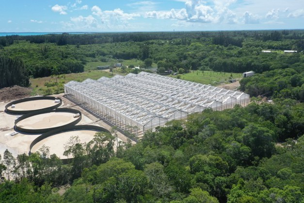 With its retractable roof, One Eleuthera will be able to close the roof ahead of heavy rainfall. In summer field production, heavy rainfalls quickly saturate the soil and make plants more vulnerable to fungal problems. With its roof closed, the greenhouse will also collect rainfall and has a million-gallon storage capacity. This is crucial due to the island’s limited freshwater resources. The greenhouse will have a desalinator as a backup.
