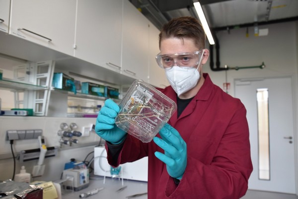 Since the venom yield is low in small spiders, the researchers remove the venom glands and sequence their mRNA. The toxins can be identified based on the gene sequence. The venom profile of the wasp spider has fully been recovered; the next step is to produce the relevant components. For this purpose, the gene sequence is incorporated into a bacterial cell using biotechnology, which then produces the toxin. “We are engineering genetically modified bacteria that produce the toxin on a large scale.” Lüddecke and his team have been able to mass-produce the main component of the wasp spider venom, the CAP protein. First functional studies will start soon.
