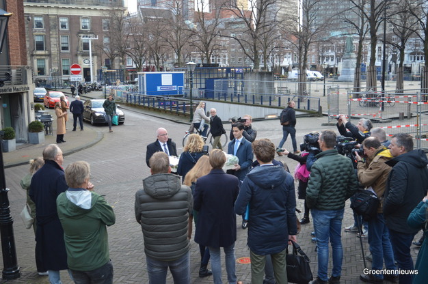Tomato growers Jack Groenewegen and Richard Hartensveld and ornamental plant growers Bert van Ruijven and René Hendriks were present when their urgent letter was handed over. They spoke to the national press, as did President Adri Bom-Lemstra and energy specialist Alexander Formsma of Glastuinbouw Nederland .