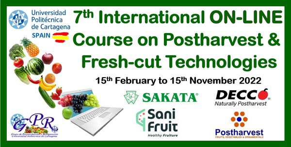 The ‘7th International on-line Course on Postharvest & Fresh-cut Technologies’ will be offered by the Universidad Politécnica de Cartagena in Spain, starting on 15th February 2022. This course gathers 43 prestigious instructors from the 5 Continents, 23 Countries and 33 Universities/Research Centers.