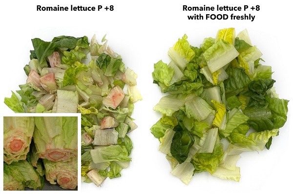 Quick immersion in the FOOD freshly solution prevents the lettuce's browning for up to 8 days so producers don't need to use any special packaging, which is no longer a prerequisite for offering this type of food in the IV range.