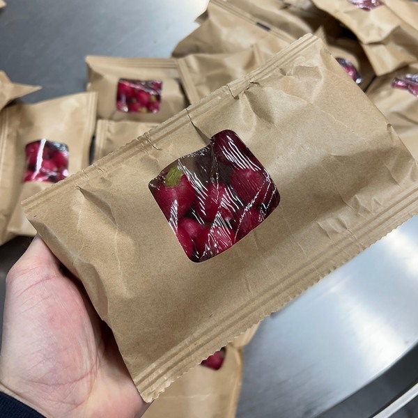 "NoW packaging extends products' shelf lives too," says Roy. "Paper's a natural product and this packaging's porosity promotes a microclimate within it. This ensures that, for example, tomato stems rot less and potatoes don't sprout and discolor as quickly. Tests by an independent agency show that shelf life increases significantly. You can use this packaging for both vertical and horizontal flow packs, making it suitable for virtually all types of fruit and vegetable products. You can easily mechanically package, say, kiwis and tomatoes, in this packaging."