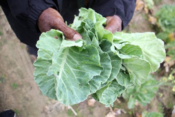 James Shackleford harvests his collards at a medium size and is well known for his collards.