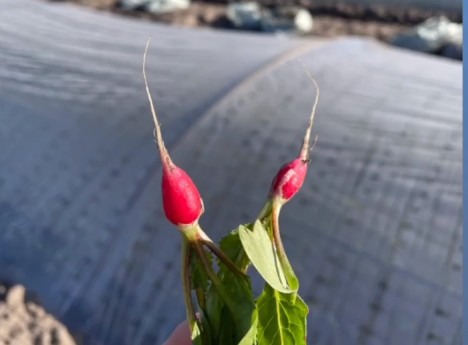 After completion of the greenhouse harvest, tunnel crops will continue seamlessly from April, and the first open field white radishes are expected to be available at the beginning of May until the end of the season in June. Parallel to the white radish harvest, foil radishes have been diligently harvested for about two weeks. "For the first time, we have decided to grow them in a heated foil tunnel because we have identified an interesting marketing potential. Compared to white radishes, the competition is much greater here, as numerous direct marketers in the region are involved in production and marketing."
