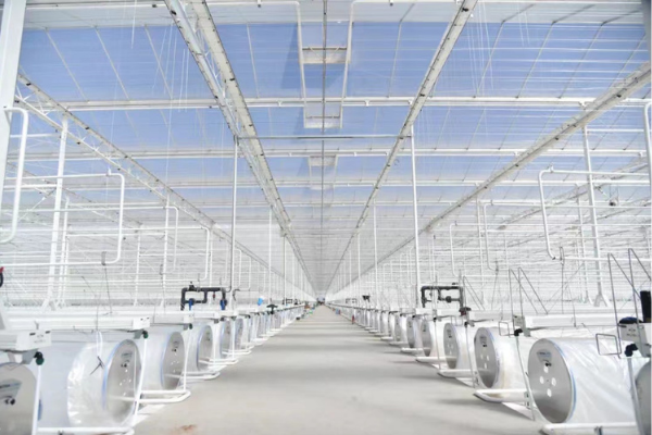 The 7.8-hectare semi-enclosed greenhouse project planted by Shandong Haoyu Group at the end of March this year uses KUBO's core Ultra-Clima® and active cooling technology, mainly for cultivating cherry tomatoes. The combination of Ultra-Clima® and active cooling enables summer planting possibilities for year-round production. We cooperated with Kingpeng Technology, and the project progressed very quickly. Construction started in July 2021, and the project was completed in March 2022. It took eight months in total, creating a miracle in the field of greenhouse construction.
