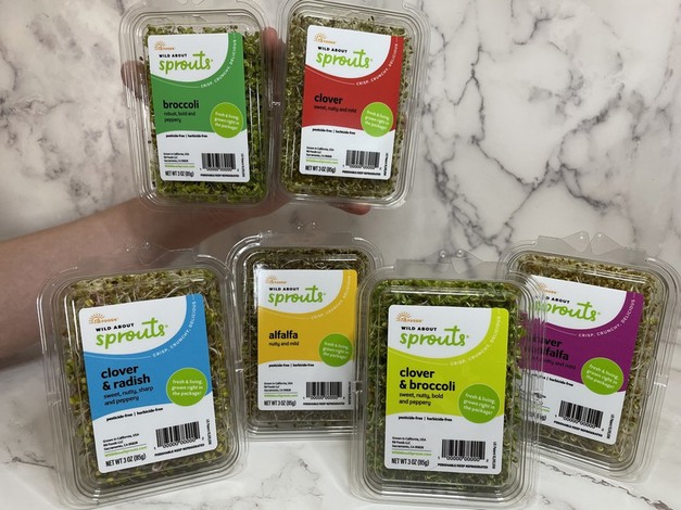 Wild About Sprouts® come in six varieties: 100% Clover, Broccoli/Clover blend, Clover/Radish blend, 100% Alfalfa, Clover/Alfalfa blend and 100% Broccoli.