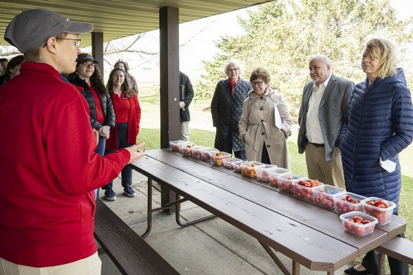 On April 15, 2022, U.S. Senator Tammy Baldwin and U.S. Representative Mark Pocan visited the West Madison Agricultural Research Station to announce $37.9M in federal funding for a new plant germplasm research facility. Chancellor Rebecca Blank and Dean Kate VandenBosch hosted the visit.