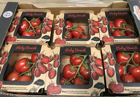 The variety has been grown for several years in Belgium already, but Jacob decided to cultivate it as well for the first time this year, entrusting its exclusive production to Prince de Bretagne. “We ship and export fruit and vegetables of Prince de Bretagne. Although we also sell strawberries, cabbage, some older vegetables, and artichokes, the tomato remains our core business. We are specialists in this product and leaders when it comes to marketing it. We wanted to propose our own brand right away, Ruby Breizh, which guarantees rigorously selected fruit packed in cardboard trays meeting the requirements of the AGEC law.” The rest of the production will be sold under the Prince de Bretagne brand in packages of 6kg.