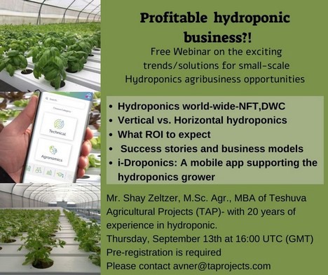 A free international webinar dealing with hydroponics and the vertical farming trend will be held on 13/9/22 at 16:00 UTC.