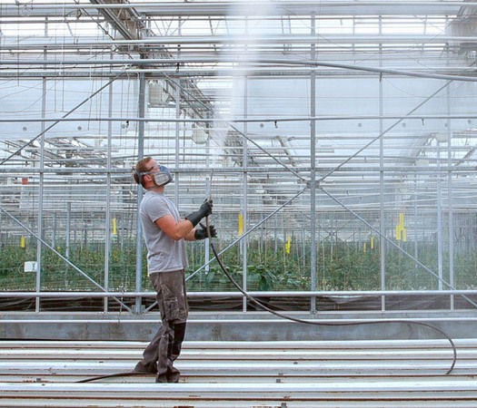 The key concept is intelligent coating. Giving careful thought to the crop's needs and what it is able to cope with. On spring days with much sun, the crop is not as vulnerable to light stress as it is to heat stress. During this time of the year, it usually makes no sense to reflect too much light.