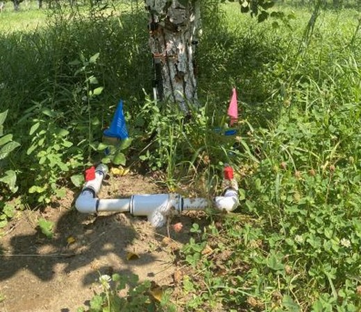 Regulated deficit irrigation valves: pink is regulated deficit irrigation, and blue is the control. Credit Sarah Davis