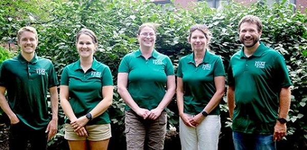 North Central IPM Center staff. Left to right: Keaton Hewitt, Kelsey Mueller, Jacque Pohl, Laura Iles, Daren Mueller. Photo by Jeffery Iles