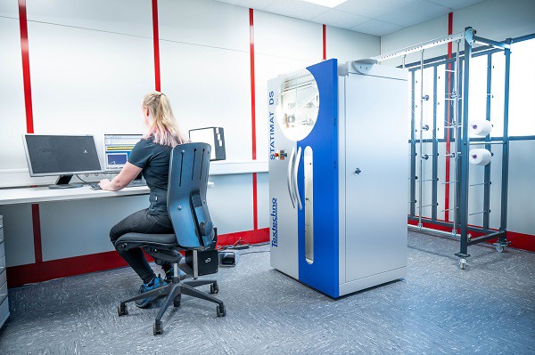 Testing the tensile strength of the yarn with the Statimat DS
