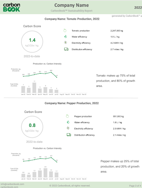 This shows the summary that customers see on the first page of the CarbonBook Sustainability Report
