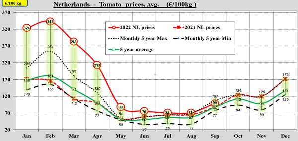For the first time in over a year, in August, there were no record prices on the European tomato market. That market, however, rebounded in September. Prices are approaching the past five years' records again. Unfortunately for growers and sellers, inflation records, too, are being smashed, and costs are far higher than in the past five years.