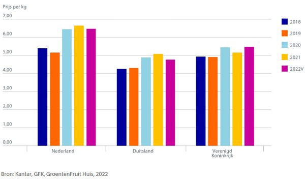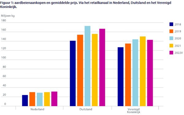 In the Netherlands and the UK, strawberries are the third-largest fruit measured by turnover and the fourth-largest in Germany. Many kilos of strawberries are bought at a relatively high kg price.