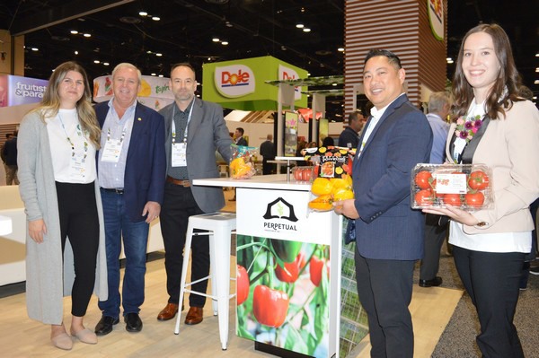 A focus on Oppy's greenhouse-grown offerings at IFPA's Global Show. From left to right are Kelsey Van Lissum, John Anderson, Kevin Batt, Aaron Quon, and Shea Rogers.