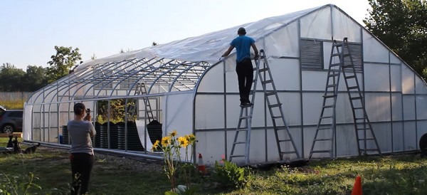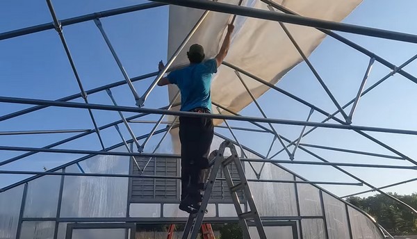 Now, the installation of the double-layer inflated plastic is done. To fully inflate the plastic, it might take up to 40 minutes- 2 hours, depending on the size of the greenhouse.