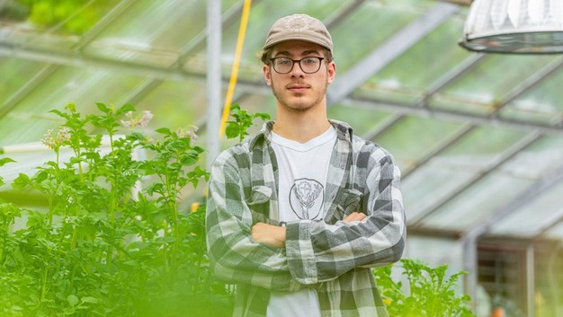 Will Kolbenson is spending his summer with spuds. Thanks to a statewide job creation program, the rising sophomore has taken his love for botany to a University of Maine lab to study potato pathogens, with work that takes him into the greenhouse and even into the field.