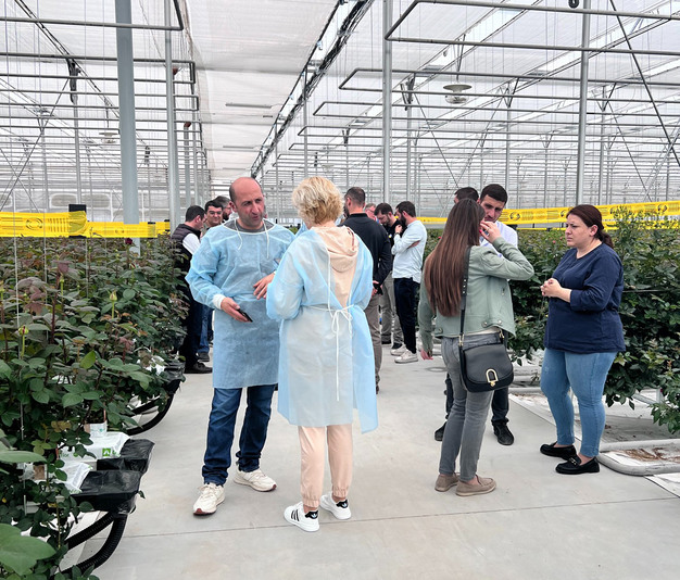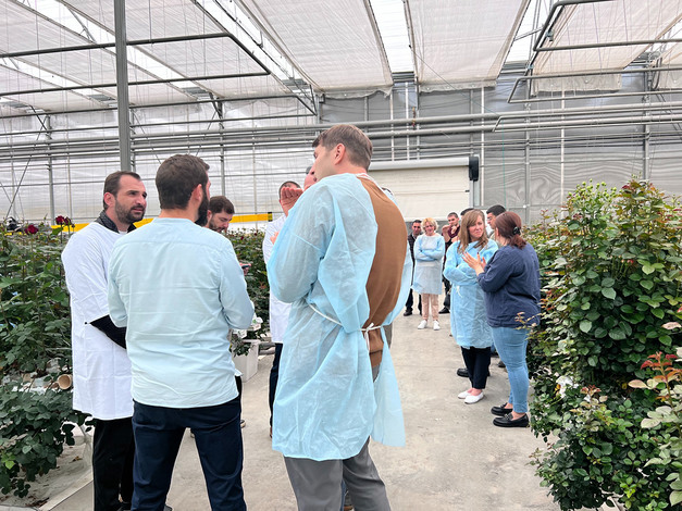 The second greenhouse visited was Gevmik LLC, a 4-hectare rose greenhouse, also equipped with the latest technologies, including a drip irrigation system, heat storage tank and CO2 injection, high-pressure fog misting and screening systems, and so on. Participants were impressed with the level of sophistication and innovation used in the greenhouse, which helped growers to produce high-quality roses more efficiently.