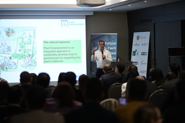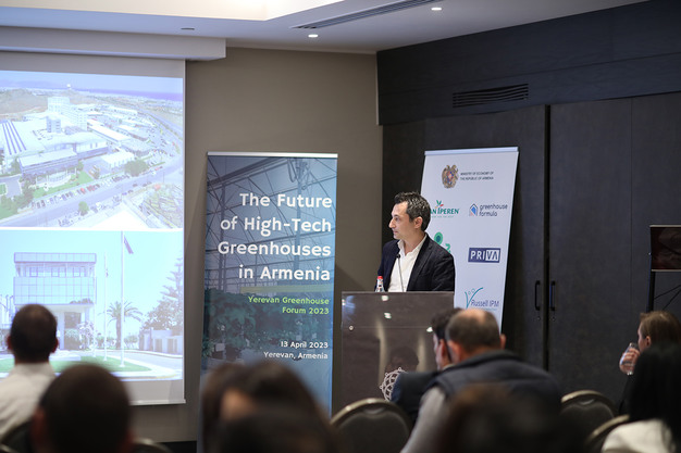 The first day of the conference featured speakers from well-known international companies such as Priva, Van Iperen, Rijk Zwaan, Svensson, Russel IPM, Lumiforte, Plastika Kritis, AgroSpace, Bioline Agrosciences, and Greenhouse Engineering. The speakers shared knowledge, and provided insights and professional expertise on the newest advances and technologies in the greenhouse sector. They exchanged ideas and showcased cutting-edge technologies and innovations that have the potential to transform the greenhouse industry in Armenia.