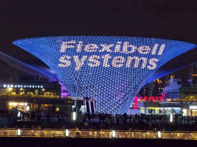 When the clock struck 8 o'clock, a lighting ceremony for the 10th anniversary of Flexibell was specially prepared at the Expo Axis, and the lighting ceremony lasted for 20 minutes. Flexibell systems shine on the Huangpu River.