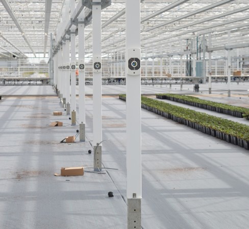 That is not the only news of the year. Alcomij's R&D department has also found a way to install these units in existing greenhouses. "The Retrofit system uses an aluminum duct to mount the units against existing columns in the greenhouse." Thus, with this minimal modification, growers can fairly easily integrate this system into existing greenhouses.