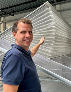 The current insect netting typically has 22 - 26 slats. Up until now, the corners were thickened because the netting was confectioned there, essentially always creating a double layer. This is no longer necessary. Marcel Schulte from Holland Gaas explains: "We have recently obtained the patent for the new way of confectioning the accordion netting. In this new design, the corners no longer have double layers, creating a much denser package. The distribution of forces on the ventilation windows is, therefor, even. As a result, the likelihood of gaps has been significantly reduced."