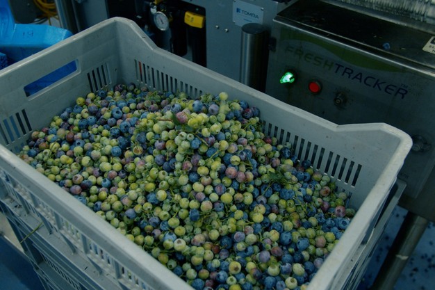 The global trend towards the machine harvesting of blueberries has brought challenges. Although machine harvesters are faster and less costly than manual picking, they also harvest debris and fruit clusters which cause disruption on packhouse production lines. Machines also harvest unwanted green and red berries which unnecessarily reduce pack-out from grading lines. The new TOMRA Neon allows Blueberry growers to automatically process machine harvested blueberries for the fresh market.