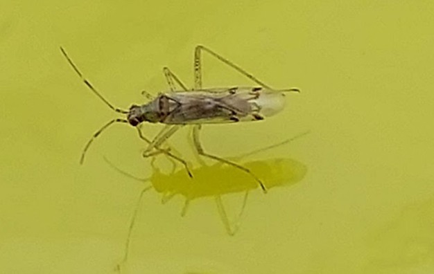 Capture of Nesidiocoris tenuis on a sticky trap with the PheroNesi pheromone.