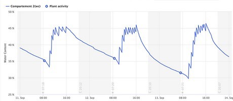 "When a plant evaporates and is active, it absorbs water. This happens based on the amount of light, humidity, temperature and air movement, among other factors. At night, there is normally no light, and the plant's stomata are closed. As a result, evaporation is close to zero and the plant absorbs virtually no water. As soon as the first rays of sunlight break through in the morning, they will start evaporating again, and continue absorbing water," Dennis says. The moment that happens is the start of plant activity. Dennis continues: "Many growers estimate this moment based on their knowledge about the plants or experience growing them. But that is not always accurate."