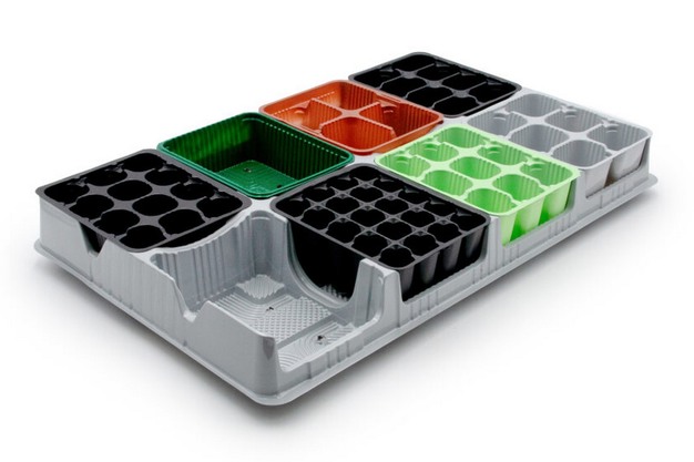 The Hortipack range satisfies the growing attention paid by operators in the horticultural industry to sustainability, a focus that is bringing about a considerable increase in the demand for recycled plastic products. Indeed, the thermoformed Hortipack items are also made from R-PET, which derives from the recycling of post-consumption PET food packaging and R-PET milk bottles. By extruding these multicolored plastics, we obtain a secondary raw material in the grey color that denotes the Hortipack range. This color not only optimizes the appearance of the vegetable or flower product but also facilitates the identification in the sorting centers during recycling.