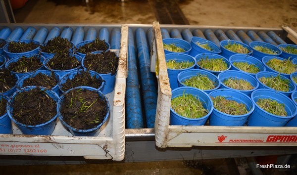 After the chive plants are harvested in November, they are put in cold storage at -10 degrees Celsius. They are then defrosted as needed with water and potted. The organic seedlings are sold to large nurseries all over Europe.