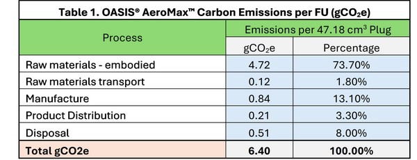 The results of the product carbon footprint assessment, specific to OASIS AeroMax substrate, can be seen in Table 1 below.