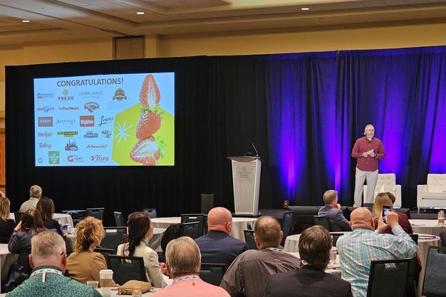 "On the front lines, produce managers work incredibly hard to keep the produce department stocked, creatively merchandised, and inviting to customers," said Joe Watson (on stage).