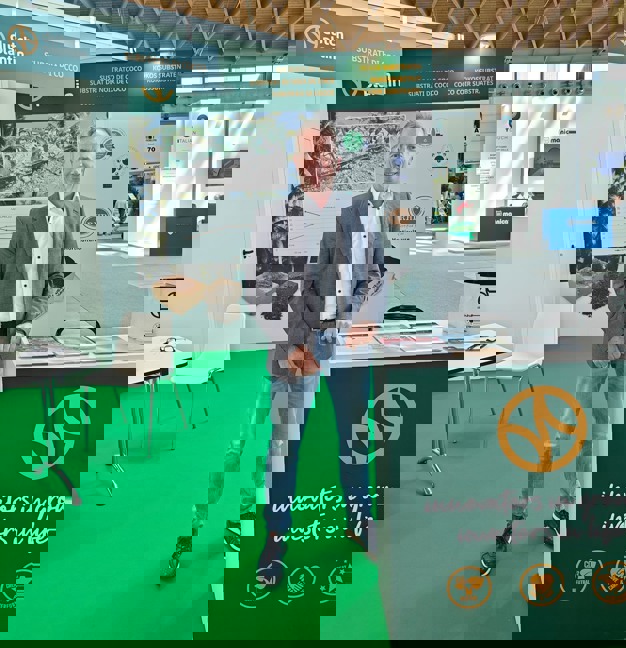 The pressed coconut products were on display this week at the Macfrut in Rimini. Wim is there for the first time due to increasing interest from Italy. "We work with various strawberry and tomato growers, but also with a kiwi plant nursery, for example." Demand for stable, quality coconut is also increasing in other Southern European countries. "Greece, but also in Spain, for example," he says. "So, we're reaching out to the customers."