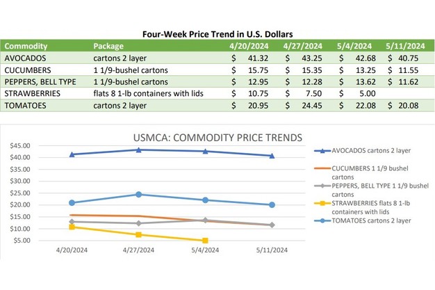 Avocados from Mexico continued to experience light demand and slow movement. Shippers are hoping to see more activity in the upcoming week with advertisements breaking for the Memorial Day holiday. Movement from Mexico crossings through Texas is expected to decrease slightly. Trading is slow Prices of conventional 84s and Organic 48-60s are generally unchanged, others are lower.