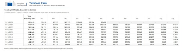 Specifically, in this 2023/24 campaign, from October to March, the EU imported 551,015 tons of tomatoes from third countries. Of these, 373,421 tons came from Morocco. But where did they go specifically?