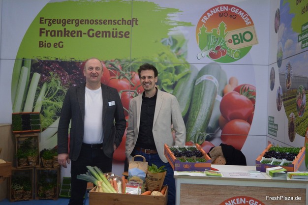 Roland Bötz and Felix Schmidling at the stand of Franken-Gemüse Bio eG at this year's BioFach in Nuremberg.