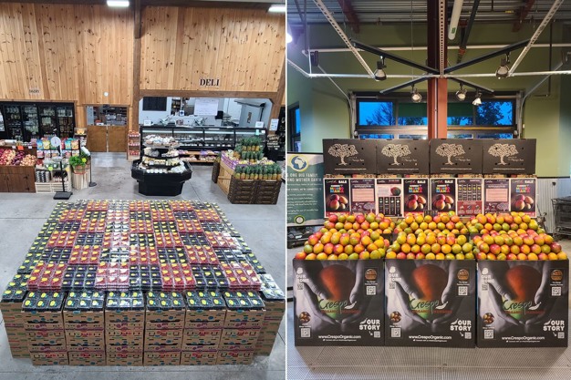 On display-building-day, Dey usually shows up early in the morning or later at night when there are no customers in the store. "We build the display for the customer, not requiring any physical labor from store employees." While Dey builds many produce displays throughout the year, with a territory from Buffalo, NY to Maine and Tennessee, he can't cover every single store. Therefore, his displays act as a blueprint for store employees, giving them ideas to replicate or act as a base visual to help them create their own masterpieces.