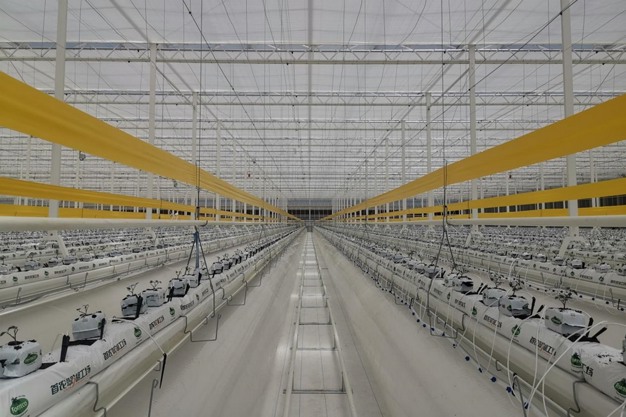 Kingpeng started construction of the second phase of the Cuihu Smart Agriculture Innovation Center in July 2023, and first plants went in last week, on May 31 2024. THe project consists of 112,000 square meters of smart greenhouses and supporting facilities, including 57,000 square meters of high-efficiency fruit and vegetable production greenhouses, 35,000 square meters of semi-closed greenhouses, and 20,000 square meters of propagation, research , and demonstration greenhouses.