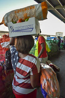 Right: a buyer at the Johannesburg fresh produce market.