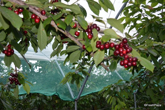 "We have two late Cerasina varieties which have a reasonable crop this year, more balanced than last year. These will be harvested in late August to early September. The first commercial crop on these trees was two years ago."
